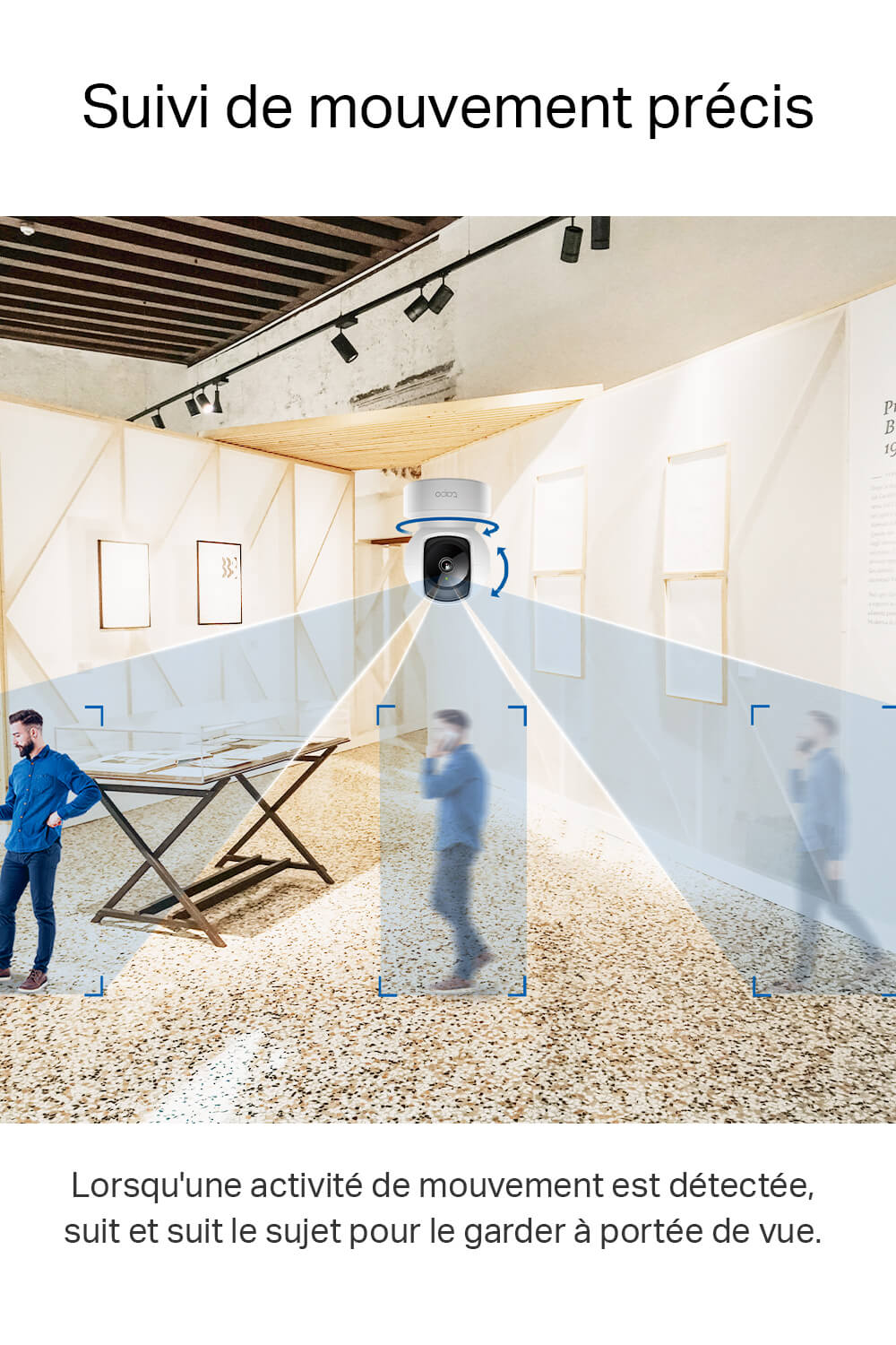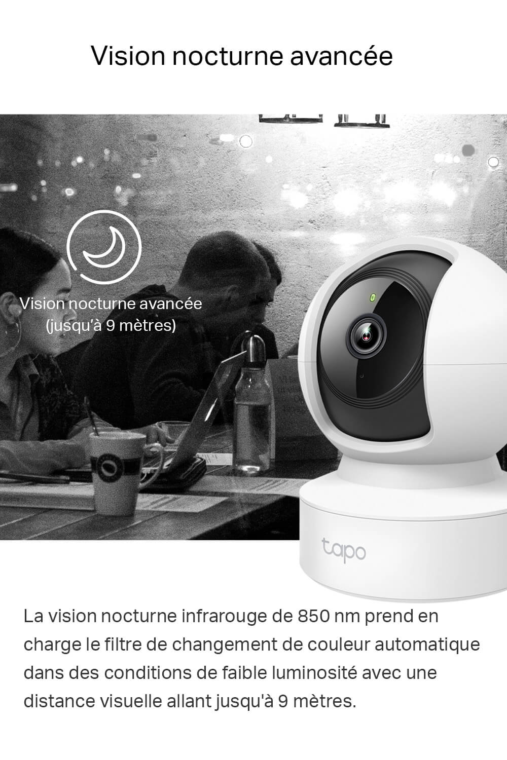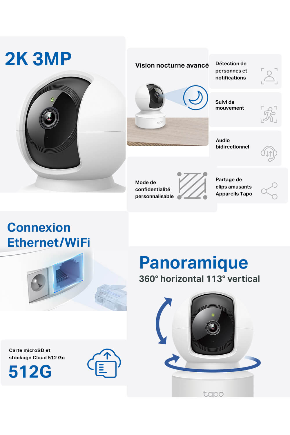 La Tapo C212 est une caméra de surveillance intérieure motorisée, idéale pour sécuriser votre domicile ou petit bureau. Dotée d’une résolution 2K (3MP, 2304 x 1296 pixels), elle offre des images nettes et détaillées. Son système de rotation panoramique à 360° et d’inclinaison verticale à 114° permet une couverture complète de la pièce, réduisant ainsi les angles morts. Grâce à la vision nocturne infrarouge (jusqu’à 10 mètres), la surveillance reste efficace même dans l’obscurité totale. La détection de mouvement, de personnes et des pleurs de bébé déclenche des alertes instantanées pour une sécurité proactive. Avec un micro et haut-parleur intégrés, la fonction audio bidirectionnelle permet une communication en temps réel. Vous pouvez enregistrer les vidéos sur carte microSD (jusqu’à 512 Go, carte non incluse) ou via le cloud Tapo Care. Compatible avec Amazon Alexa et Google Assistant, elle se contrôle facilement à la voix. L’installation s’effectue en Wi-Fi ou Ethernet, et l’application Tapo (iOS 9+ / Android 4.4+) simplifie son usage. Des fonctionnalités avancées comme les zones de confidentialité personnalisables, la détection précise des mouvements, et l’alarme sonore et lumineuse renforcent la sécurité de votre intérieur.