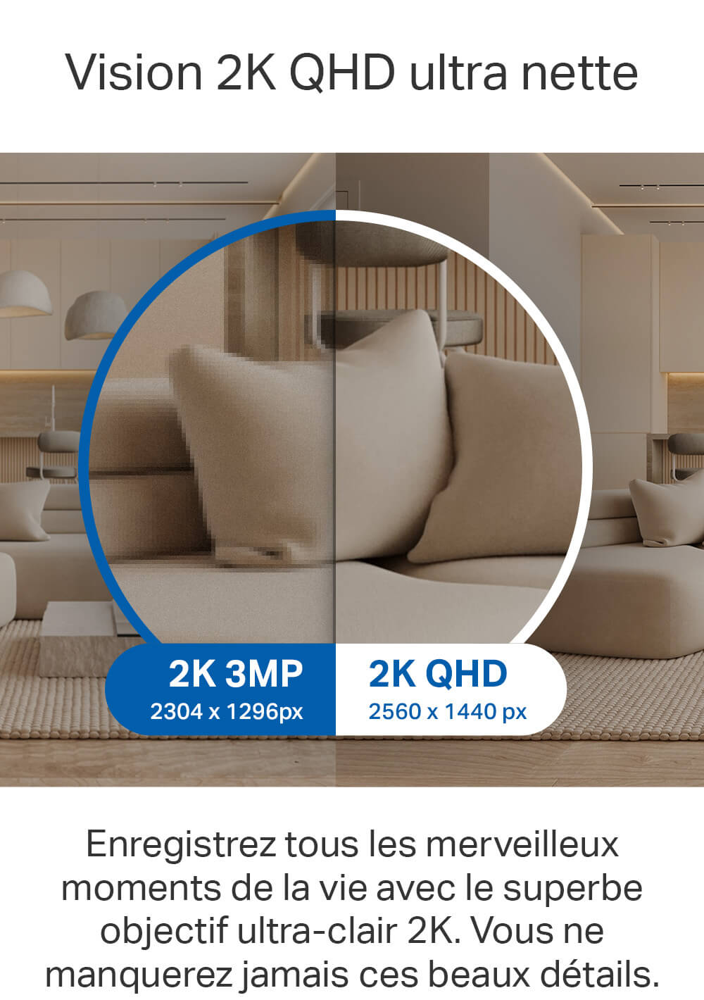 - Résolution 2K ultra-nette – Capturez chaque détail avec une qualité d'image exceptionnelle de 2304 x 1296 pixels