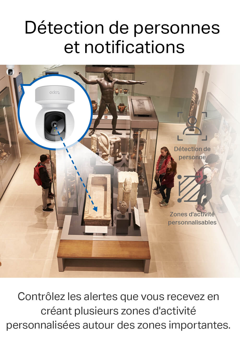 Dotée d'une intelligence artificielle performante, la Tapo C212 distingue les mouvements, les personnes et même les pleurs de bébé. Vous recevez des notifications en temps réel, vous permettant de réagir rapidement à toute situation. La vision nocturne infrarouge assure une surveillance continue, même dans l'obscurité totale.