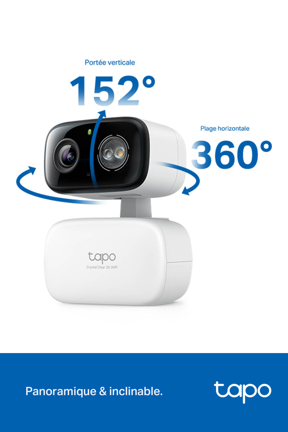 La caméra Tapo C216 révolutionne la surveillance domestique avec sa qualité d'image 2K (3MP) et sa couverture panoramique à 360°. Conçue pour s'adapter à tous vos besoins, elle offre une protection complète de votre domicile, à l'intérieur comme à l'extérieur.
