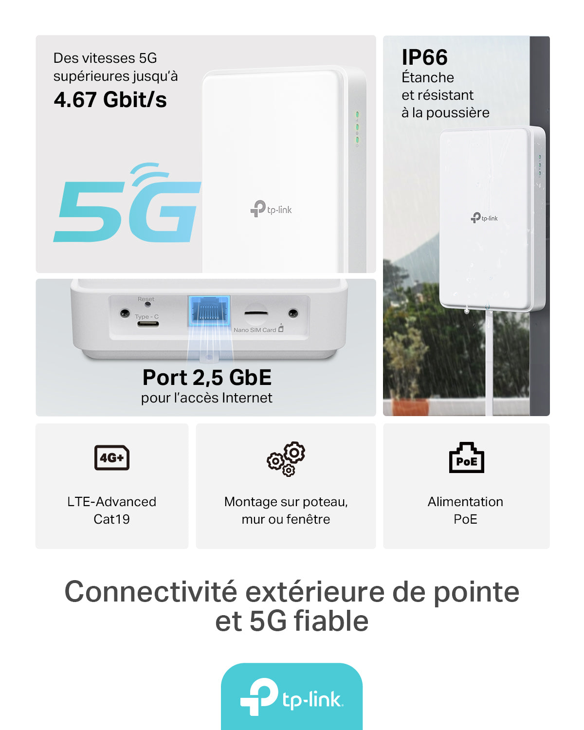 Routeur 5G Extérieur IP66 avec Port Ethernet 2.5GE POE - Archer NE200-Outdoor