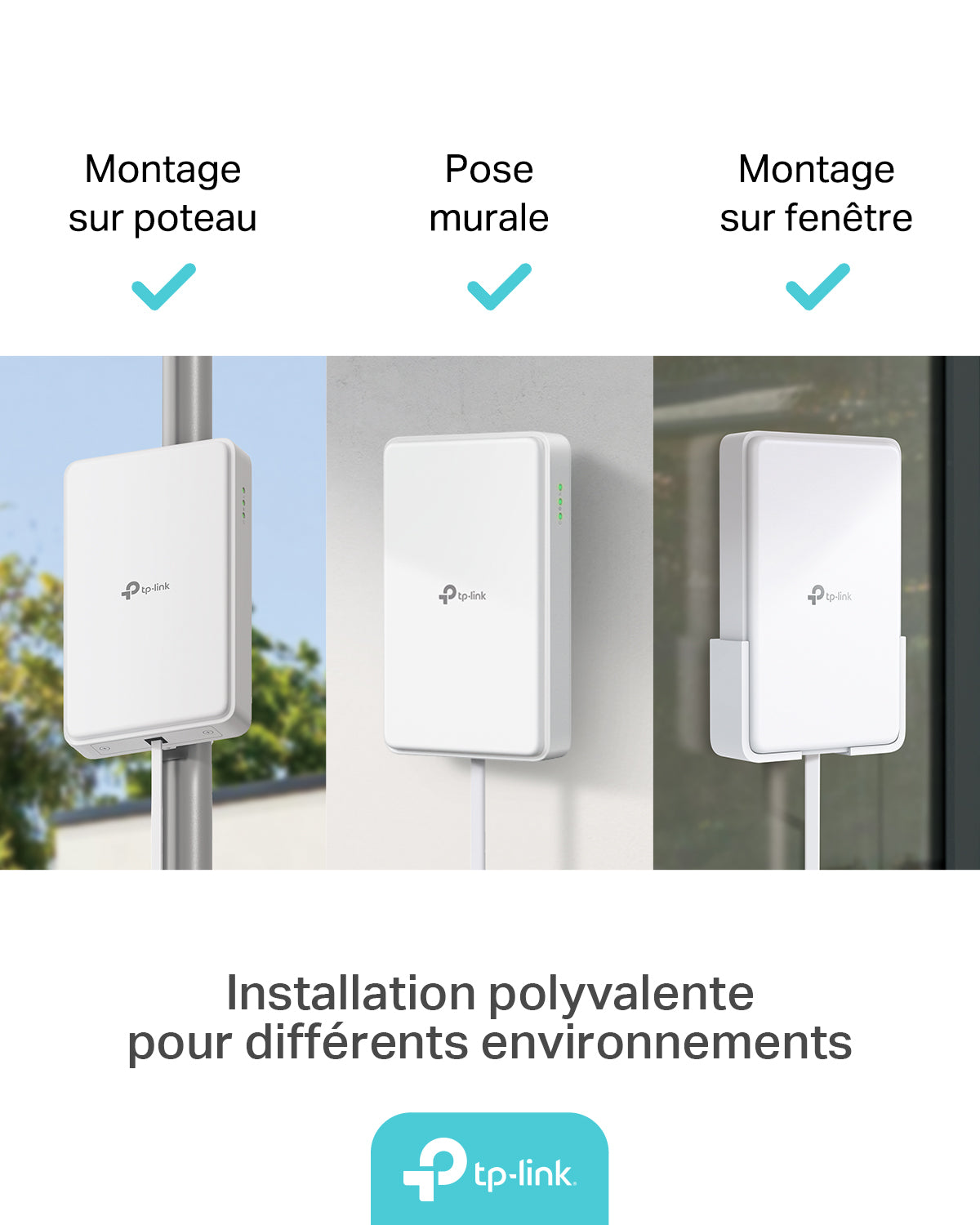 Vous pouvez monter ce routeur sur un poteau, un mur ou une fenêtre, selon vos besoins et l'emplacement souhaité. -