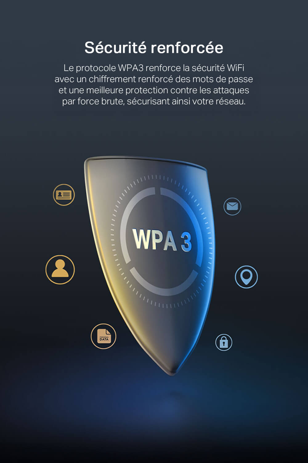 Protocoles supportés IEEE 802.11ax/ac/n/a (5 GHz), IEEE 802.11ax/n/g/b (2,4 GHz), Bluetooth 5.2, WPA3