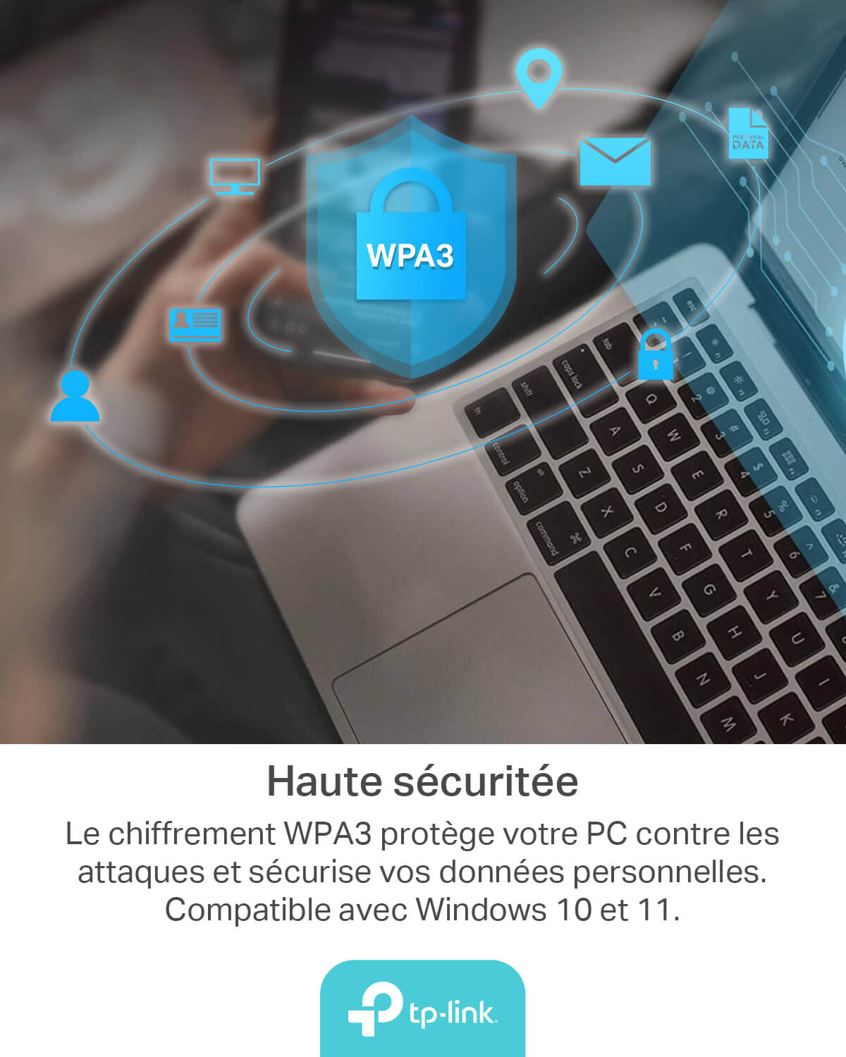 • Sécurité WPA3 pour une protection renforcée – Bénéficiez d’un chiffrement avancé pour sécuriser vos données et protéger votre réseau contre les intrusions.