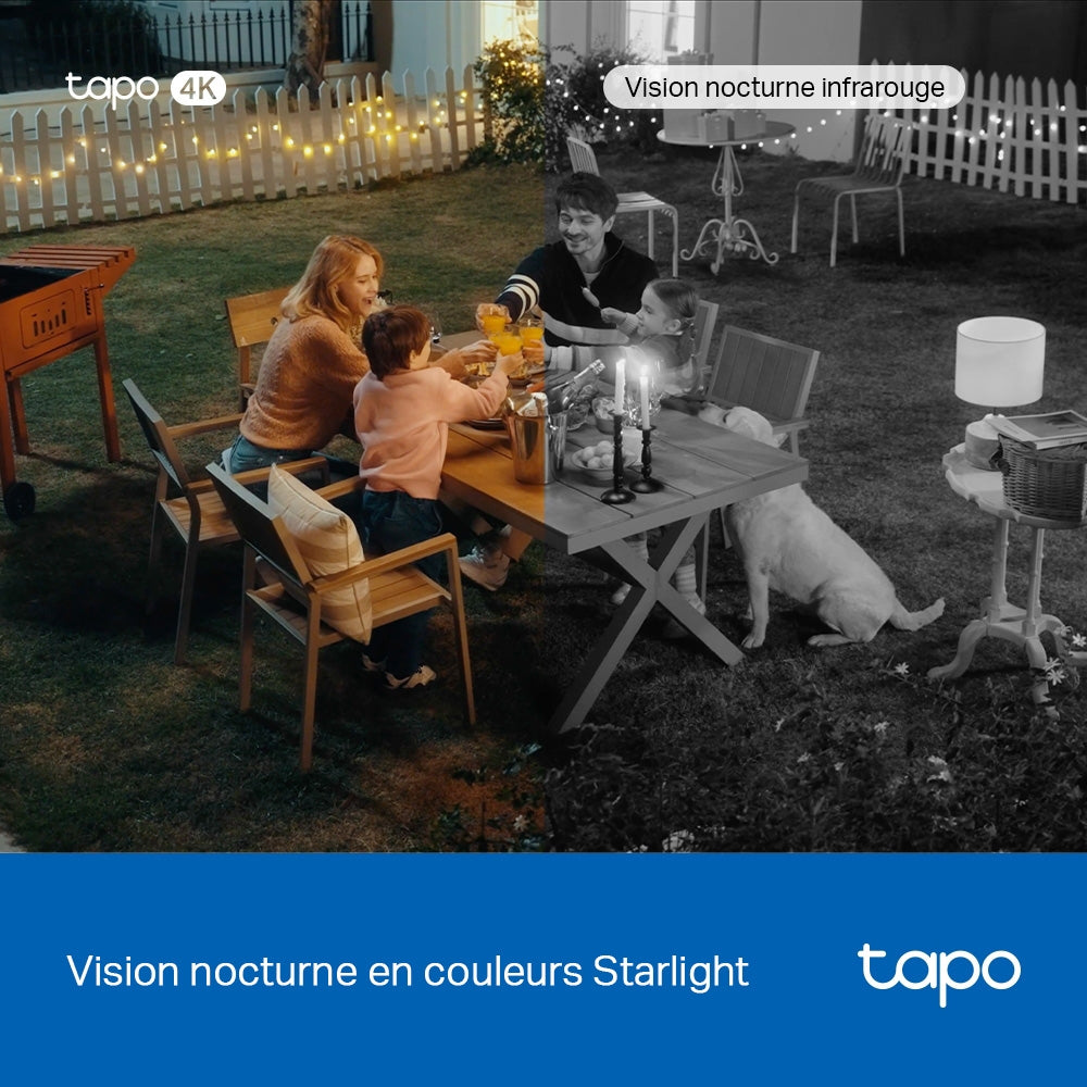 La Tapo C560WS est une caméra de surveillance extérieure motorisée, conçue pour une sécurité maximale des habitations et espaces extérieurs. Signée Tapo (sous-marque de TP-Link), elle dispose d’une résolution Ultra HD 4K (8 MP, 3840 x 2160 pixels) et offre des images ultra-détaillées. Son objectif motorisé permet un champ de vision panoramique à 360° (pan) et 98° (inclinaison), associé à un zoom numérique 18x et une ouverture F1.6 pour des détails précis. Grâce à l’intelligence artificielle embarquée, elle reconnaît visages, personnes, animaux ou véhicules et limite les alertes aux événements pertinents, sans besoin d’abonnement.