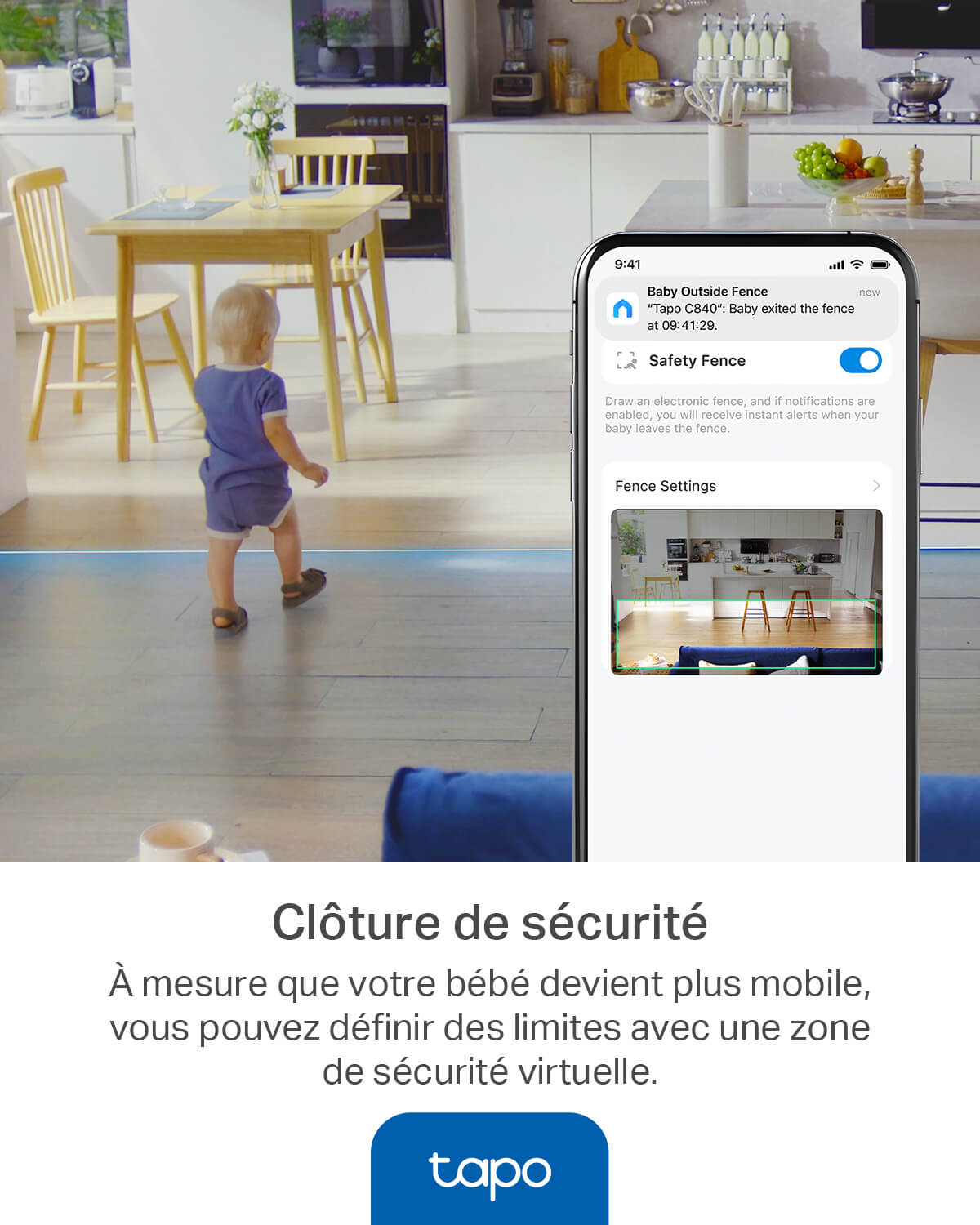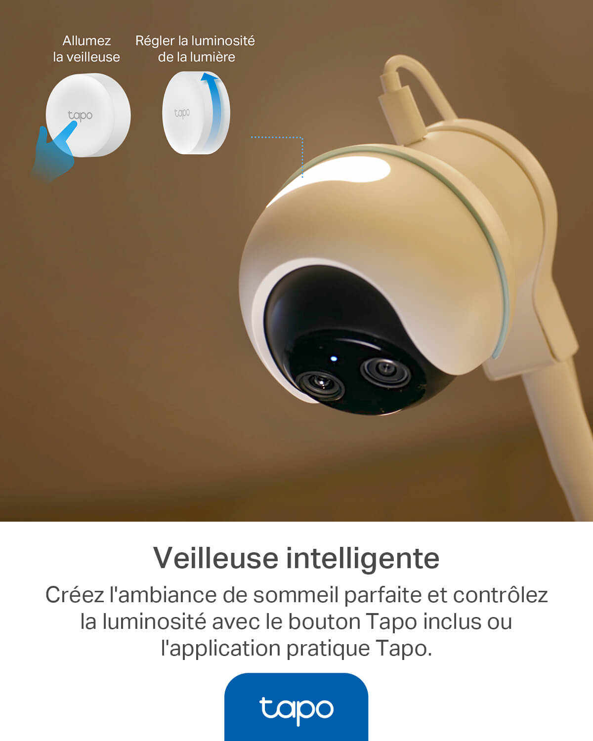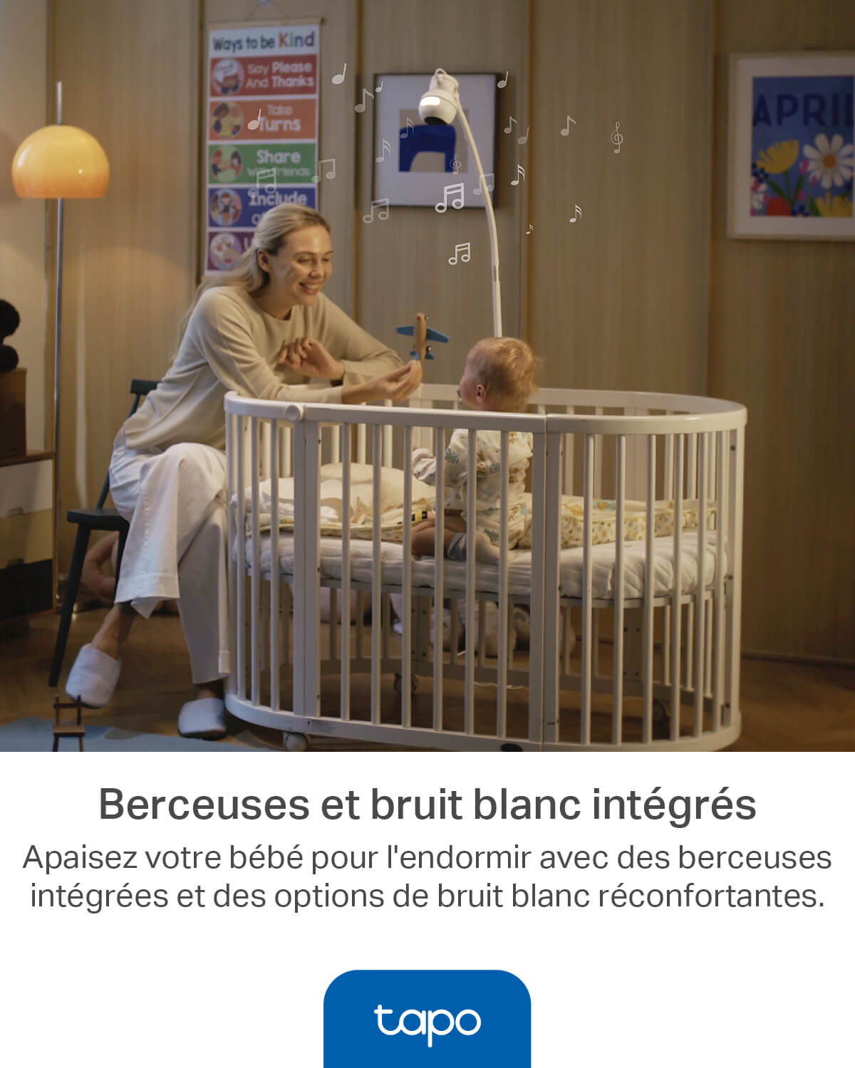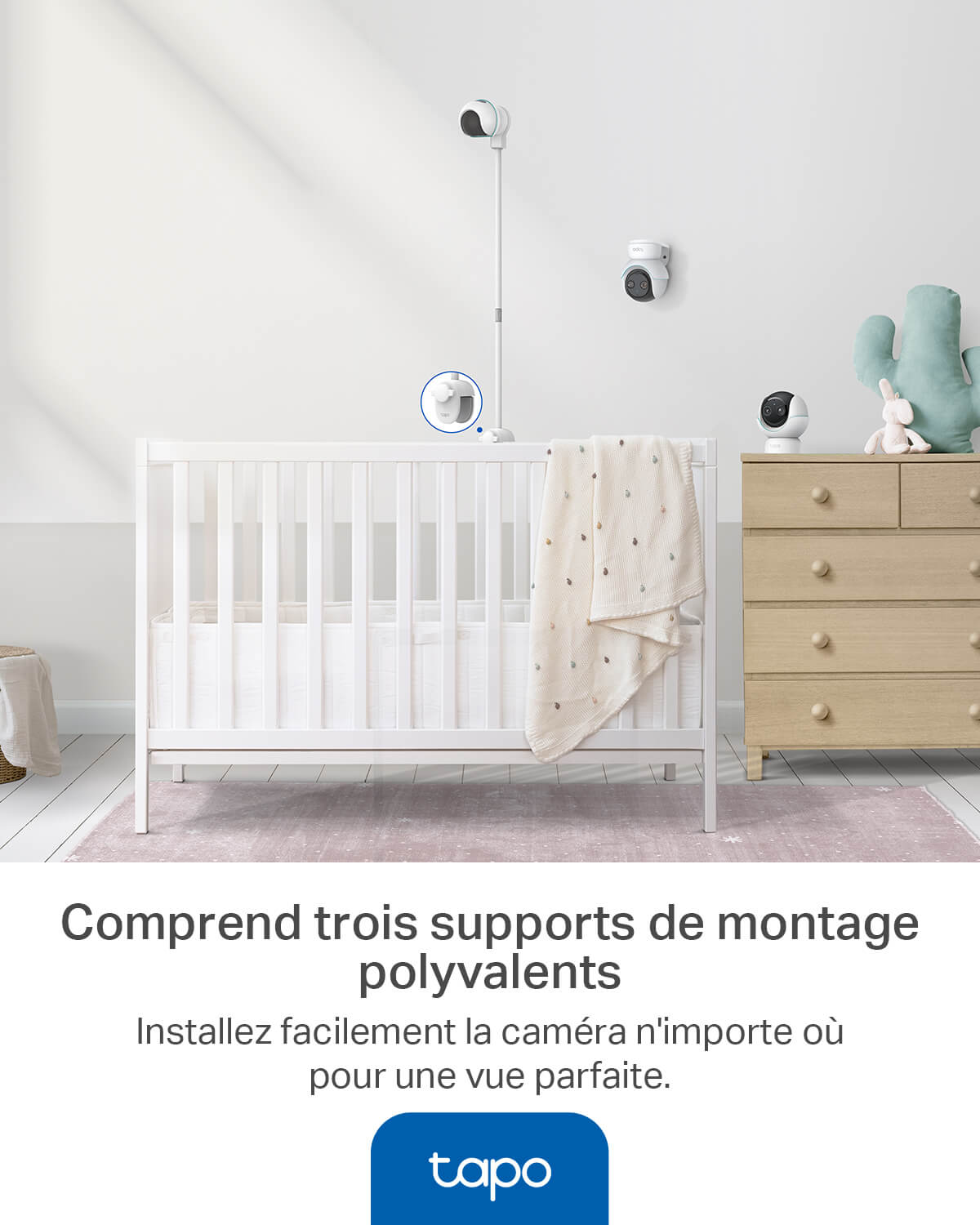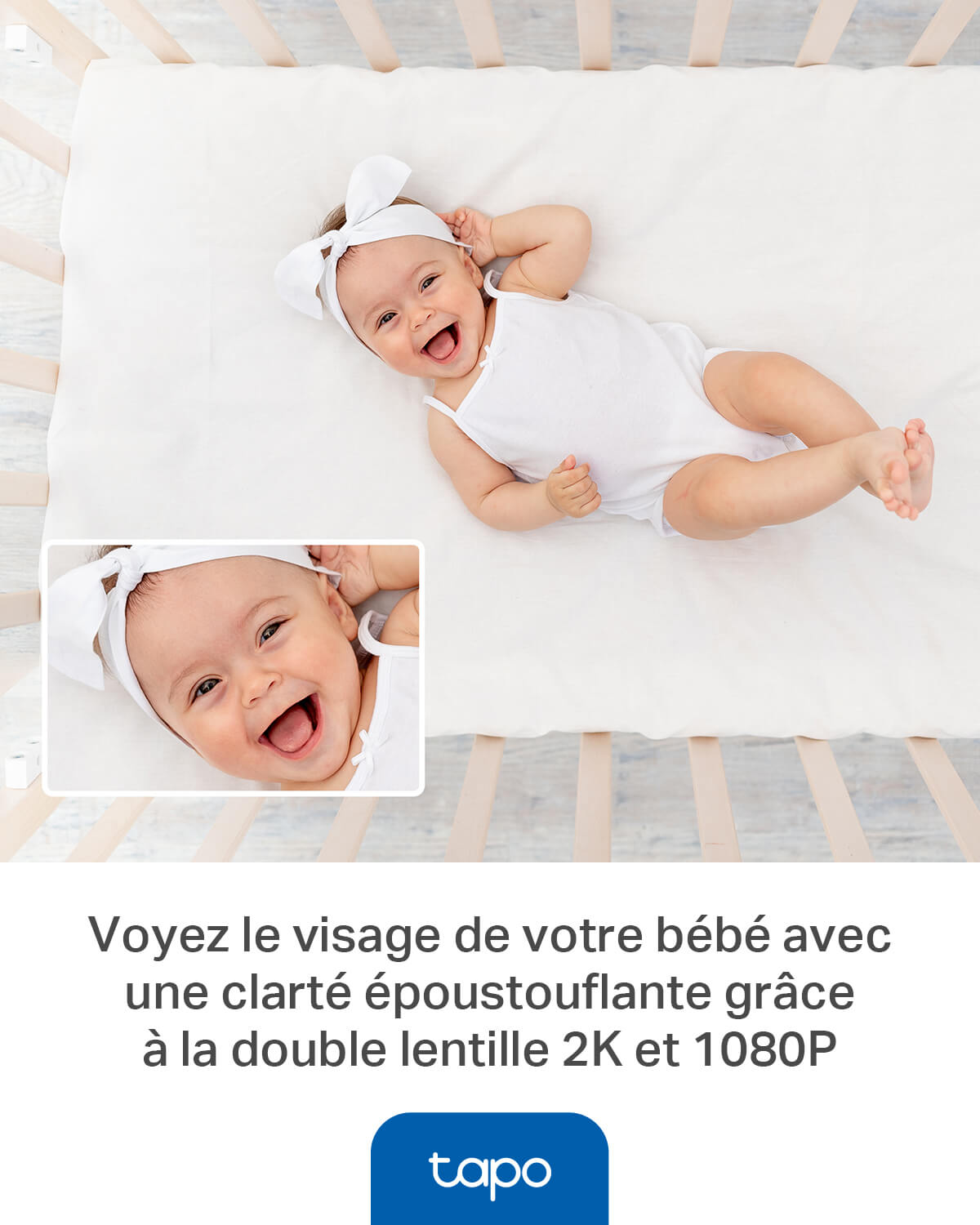 La caméra Tapo C840 révolutionne la surveillance des bébés avec sa technologie de pointe. Dotée d'un double objectif, elle offre une vue panoramique 2K de la chambre et des gros plans 1080p détaillés de votre petit ange.