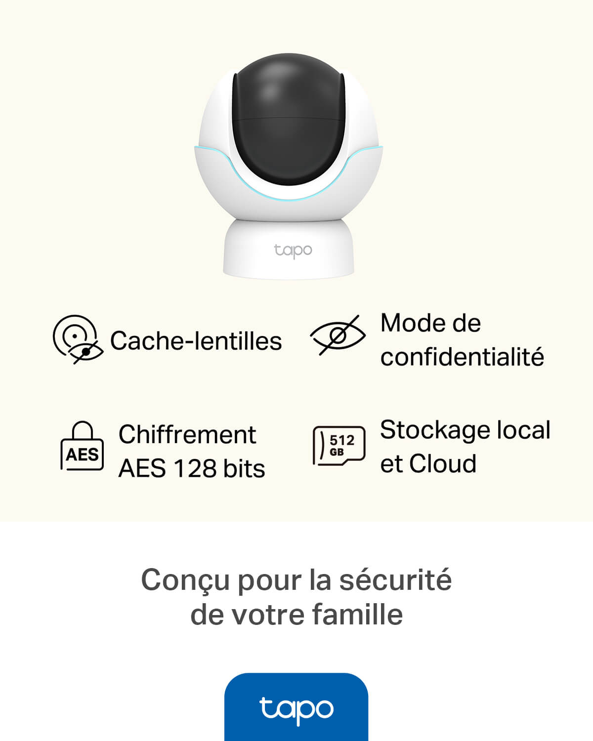 - Connectivité Wi-Fi 2,4 GHz – Compatible avec l'application Tapo pour Android et iOs