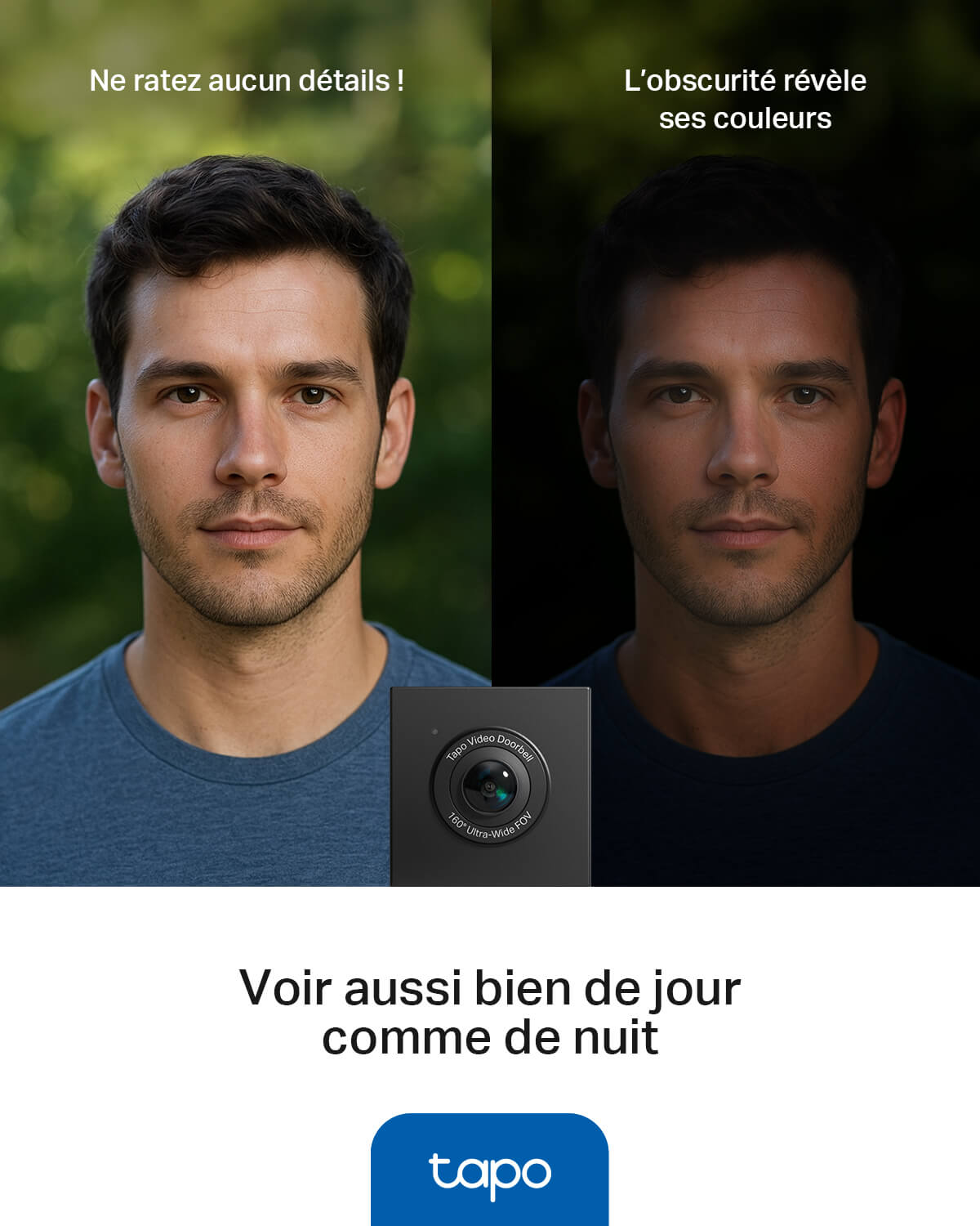 La sonnette vidéo connectée Tapo D210 révolutionne la sécurité de votre domicile. Avec sa caméra 2K et son champ de vision extra-large de 160°, elle capture chaque détail de vos visiteurs, de la tête aux pieds. Profitez d'une surveillance sans faille, jour et nuit, grâce à sa vision nocturne avancée en couleur et infrarouge.