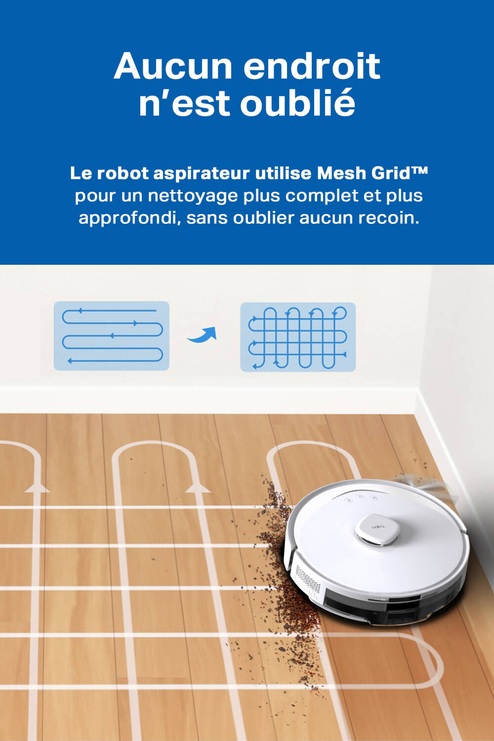 Fonctionnalités de l'aspirateur robot | Navigation LiDAR et Gyro double pour cartographie et navigation précises, Vision à 360°, Bouche d’aspiration flottante pour nettoyage des interstices, Brosse principale détachable, Multiples modes d’aspiration (Silencieux, Standard, Turbo, Max), Auto-boost sur tapis, Recharge et reprise automatique du nettoyage | Navigation LiDAR + gyroscope, Cartographie de haute précision, Évitement d'obstacles avec LiDAR, Protection anti-chute, Fonction Recharge & Reprise, Augmentation automatique de l'aspiration sur tapis, Lavage humide avec contrôle électrique du flux d'eau, Suivi en temps réel, Zones de nettoyage personnalisées, Programmation, Murs virtuels, Zones interdites | Navigation intelligente LiDAR+IMU, Retour automatique à la base, Compatible Alexa et Google Assistant, Planification personnalisée, Nettoyage par zone/pièce, Zones interdites, Réglages spécifiques tapis, Détection obstacles et seuils 22 mm | |