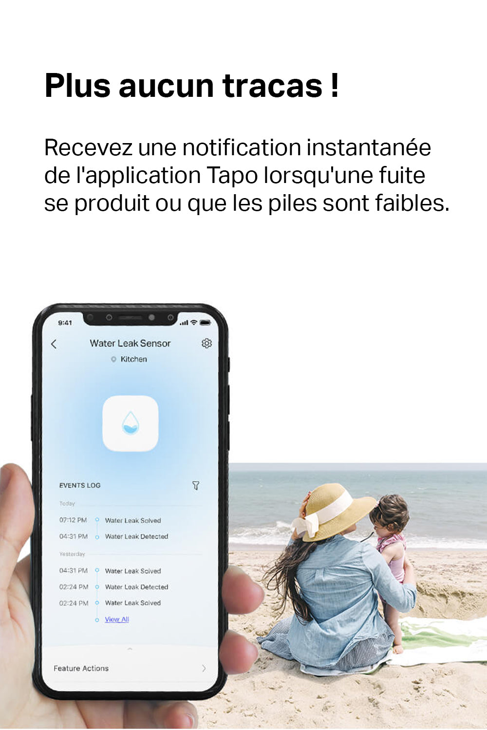 Le Tapo T300 va au-delà de la simple détection en offrant un système d'alerte multidimensionnel. En plus de son alarme sonore ajustable, il peut déclencher des alertes visuelles via les ampoules connectées Tapo, créant ainsi un véritable écosystème de sécurité. Cette approche globale vous permet de réagir rapidement en cas de fuite, minimisant les risques de dégâts coûteux. Que vous soyez chez vous ou à l'extérieur, vous restez toujours informé et en contrôle, grâce aux notifications instantanées sur votre smartphone.