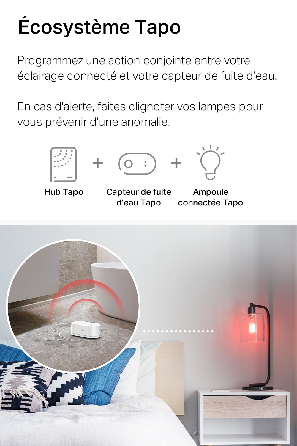 Le capteur s'intègre à l'écosystème Tapo, permettant des alertes visuelles avec les ampoules connectées et un contrôle centralisé via l'application Tapo.